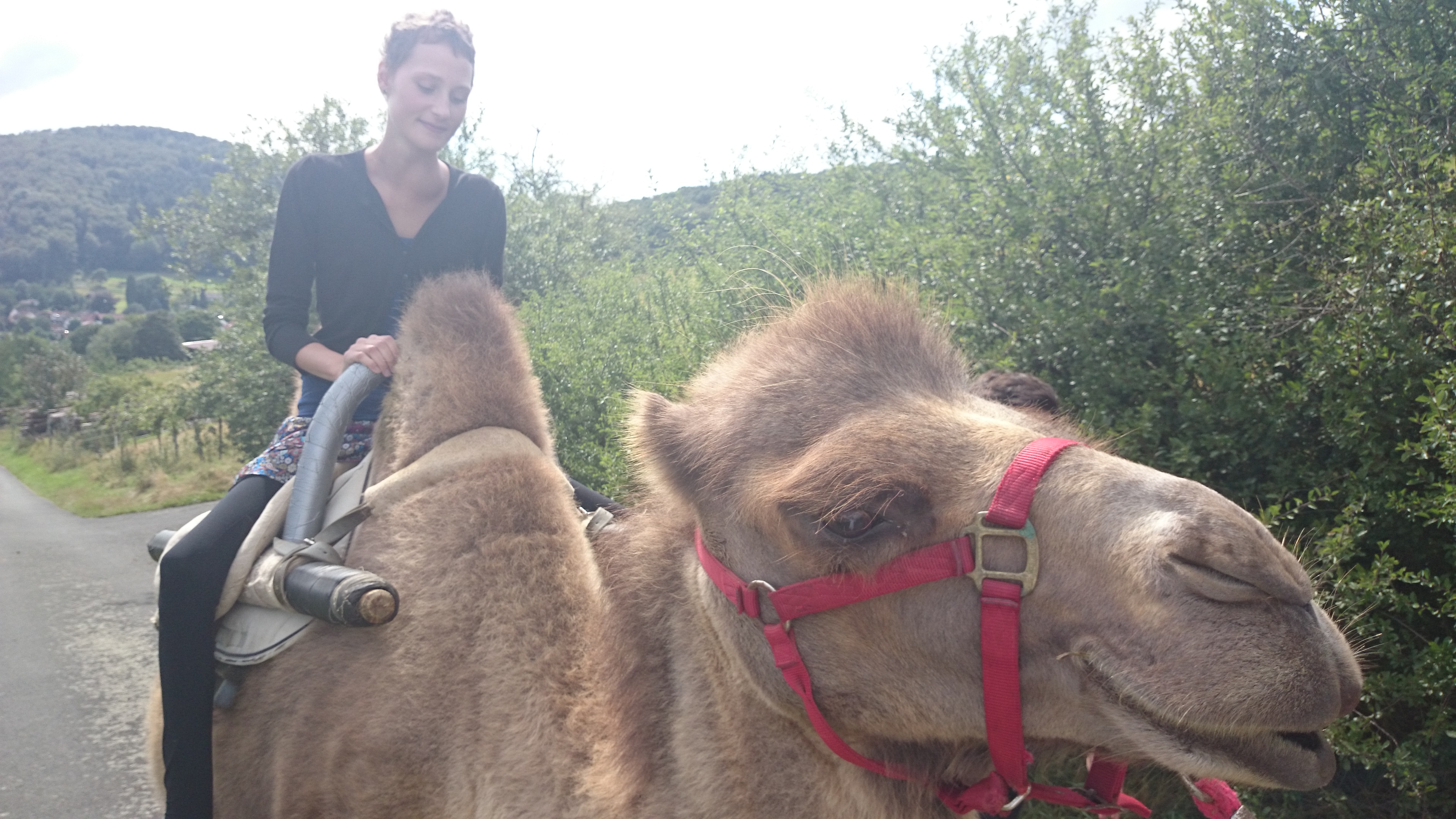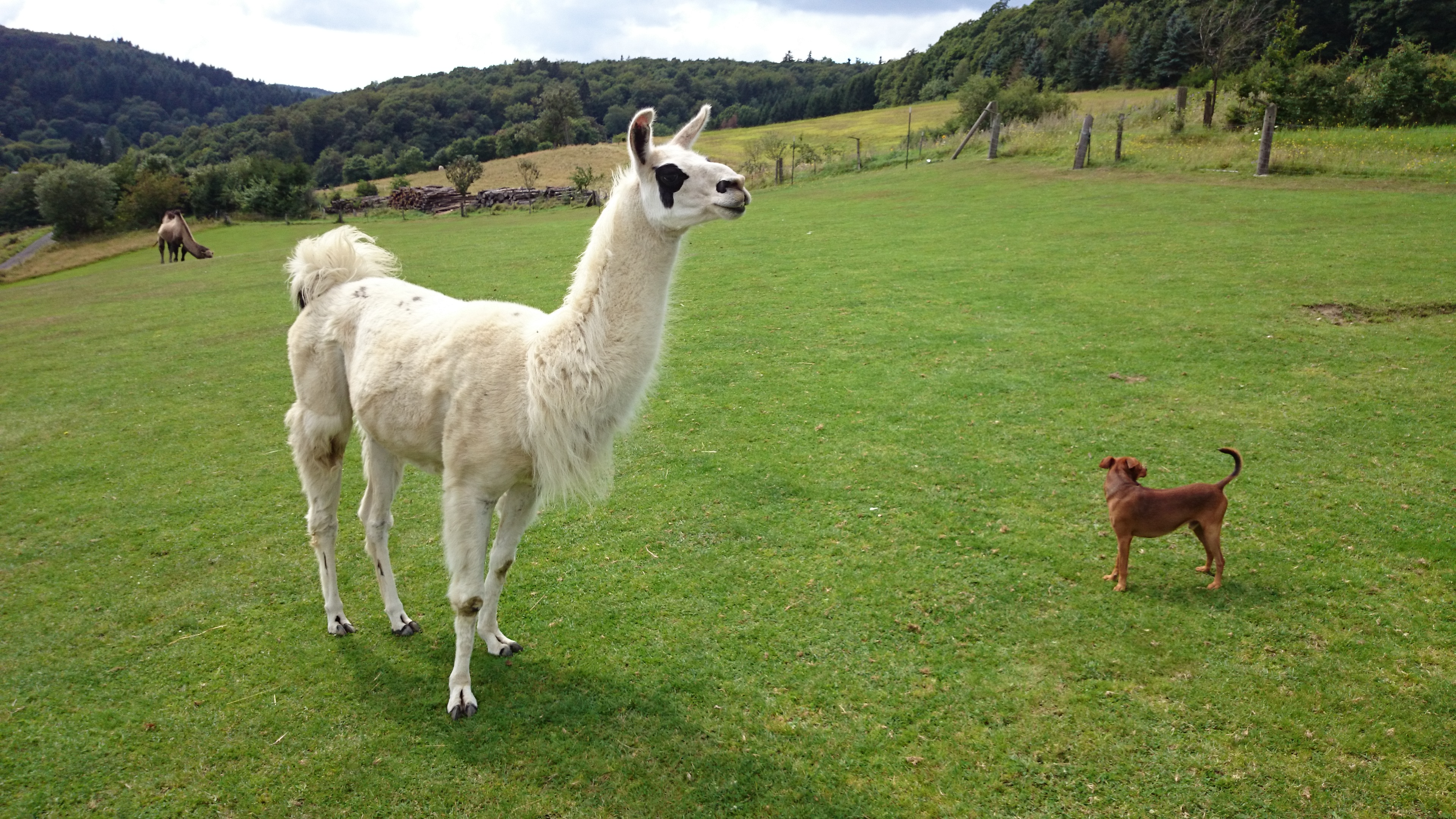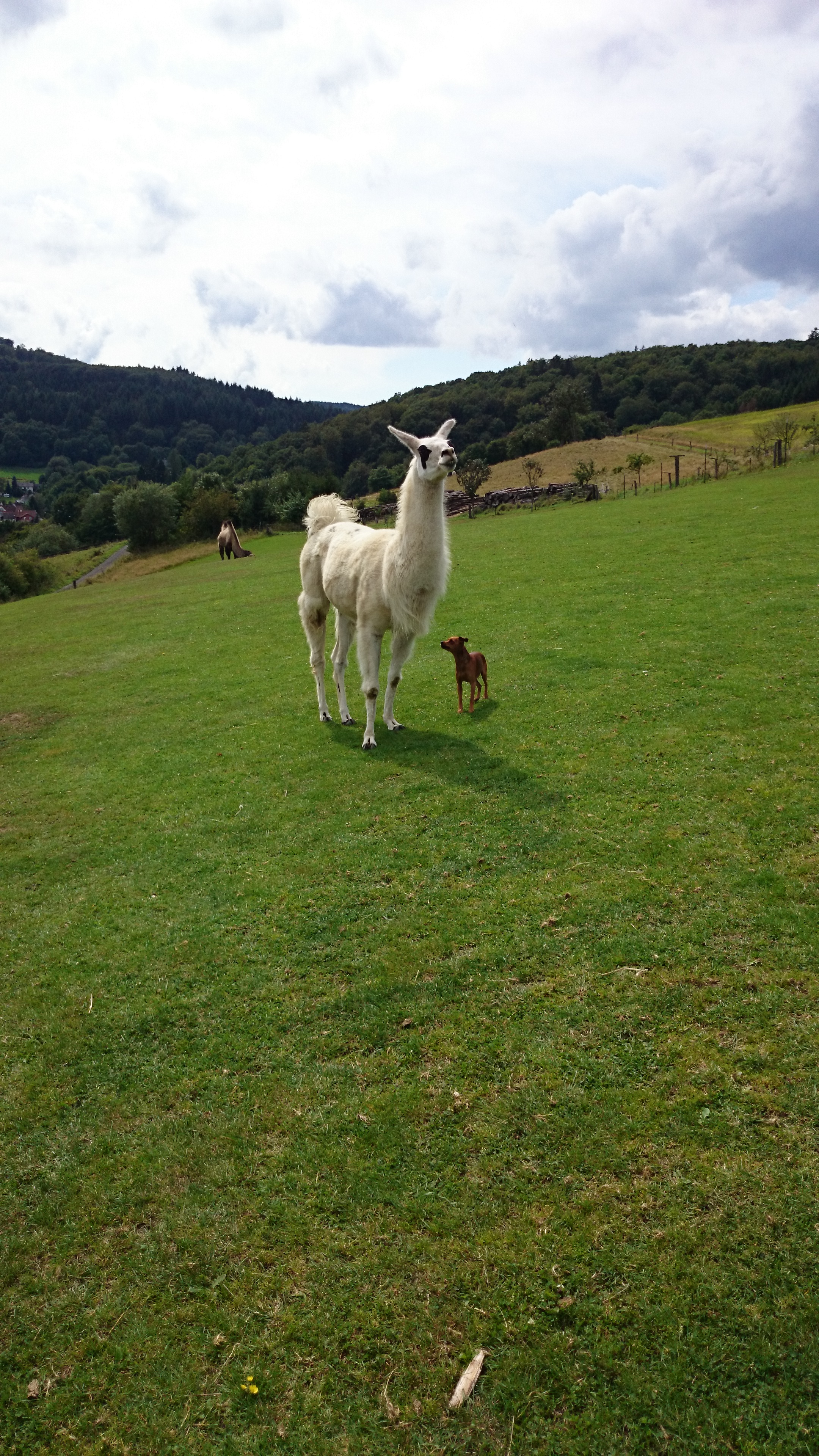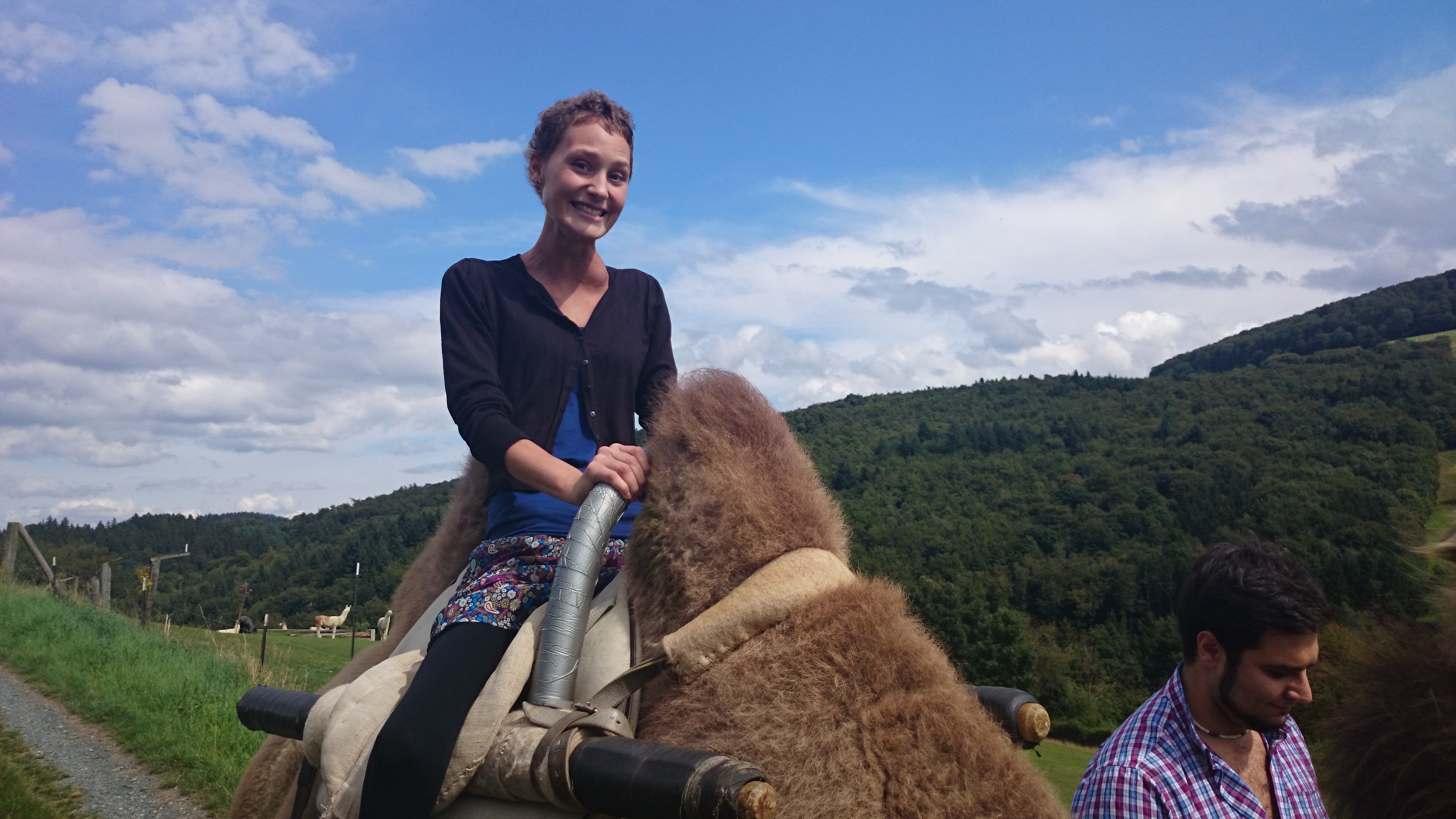 Als wir also fröhlich durch den Taunus fuhren, sahen wir von weitem merkwürdige Tiere…es sah fast so aus, als könnten es Kamele und Lamas sein…natürlich! Im Taunus! Wo waren die Karawanen und Aladdin?