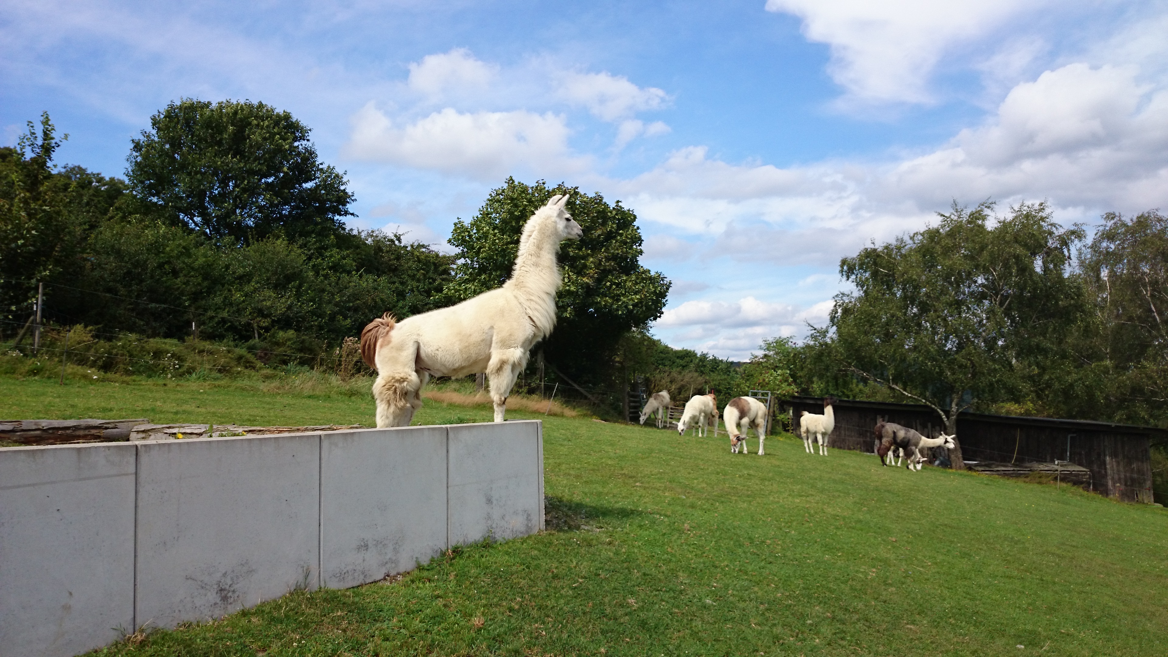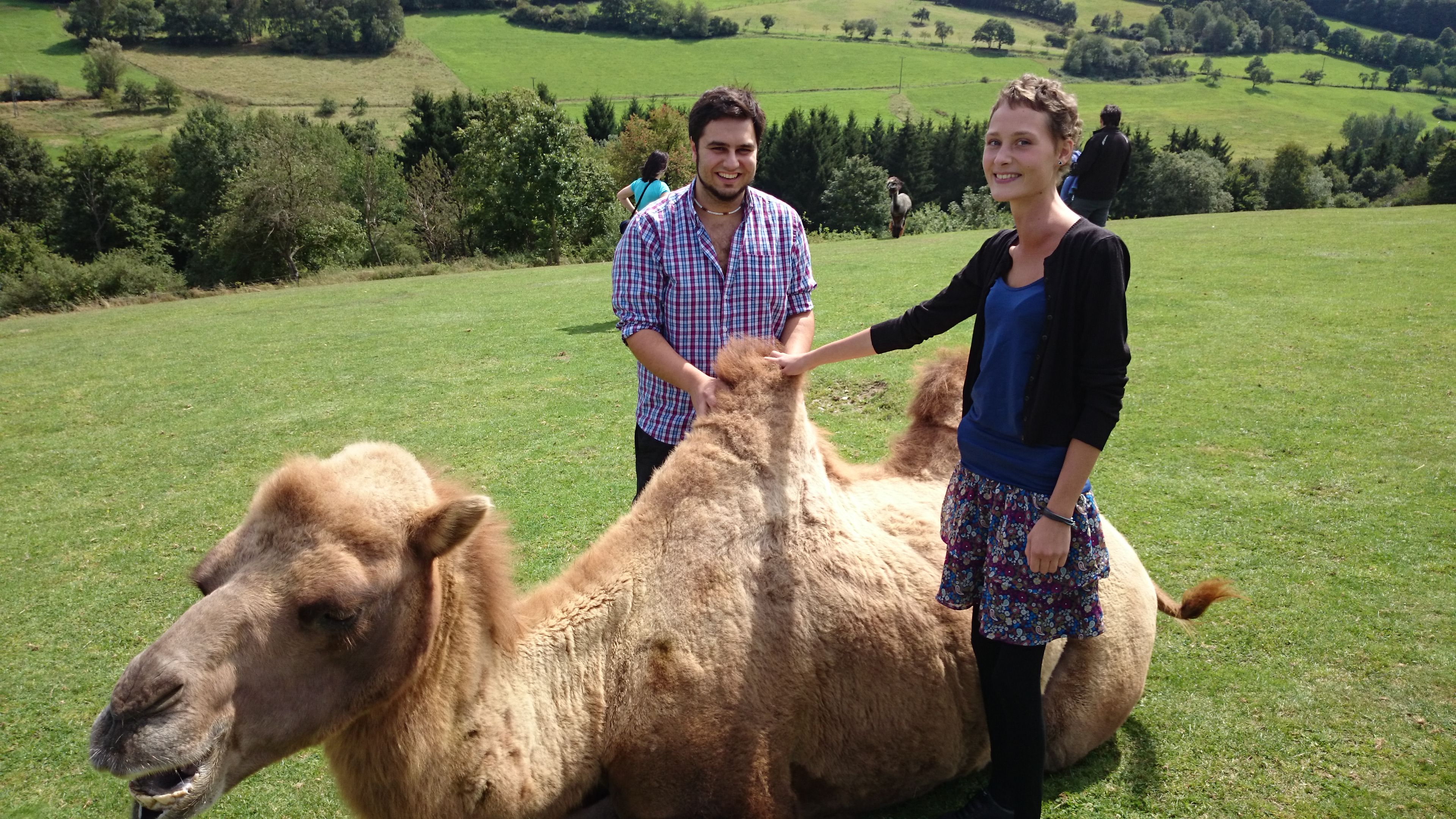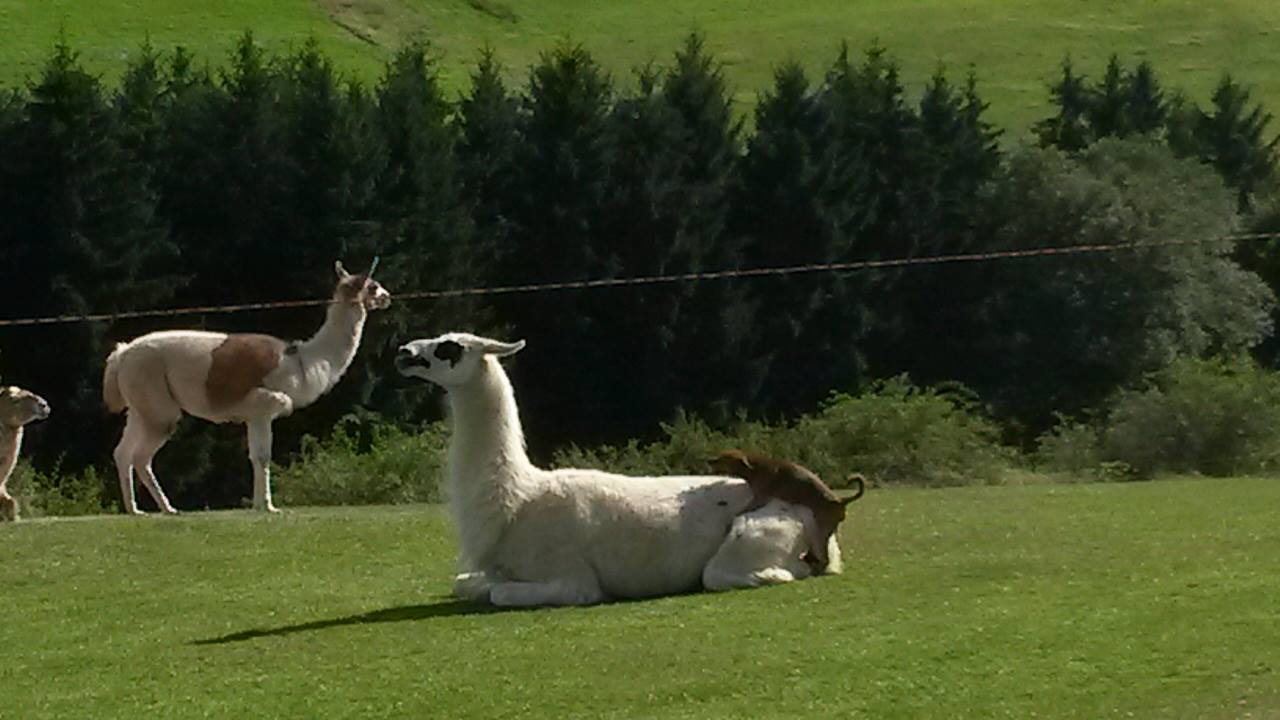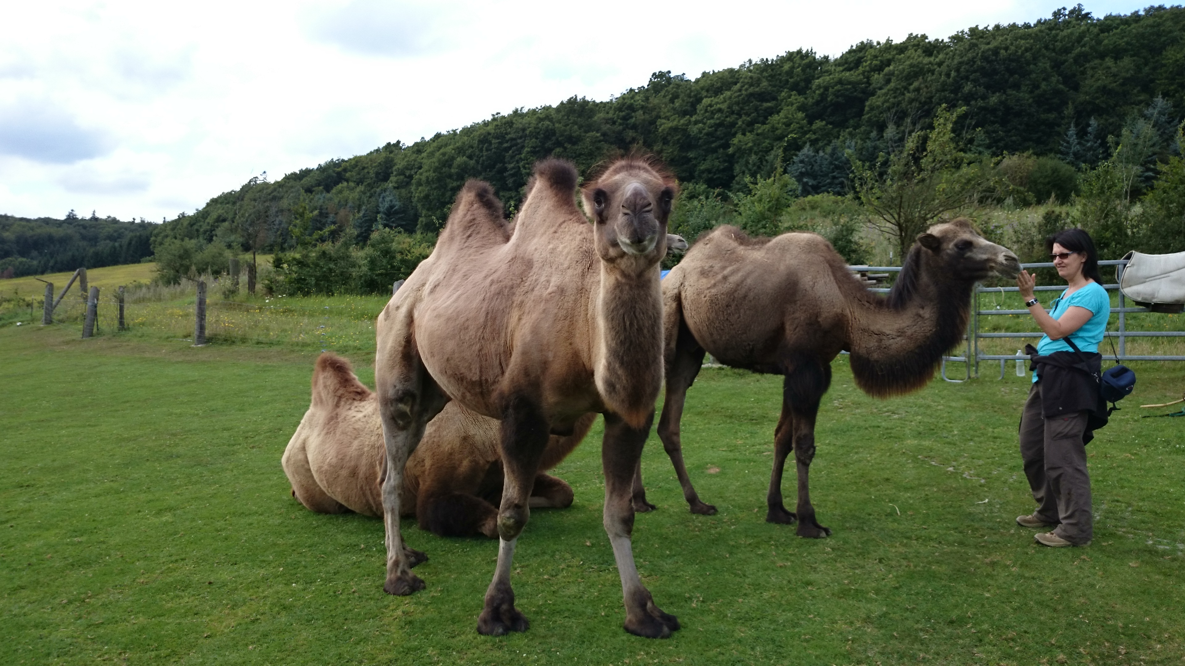 Als wir also fröhlich durch den Taunus fuhren, sahen wir von weitem merkwürdige Tiere…es sah fast so aus, als könnten es Kamele und Lamas sein…natürlich! Im Taunus! Wo waren die Karawanen und Aladdin?