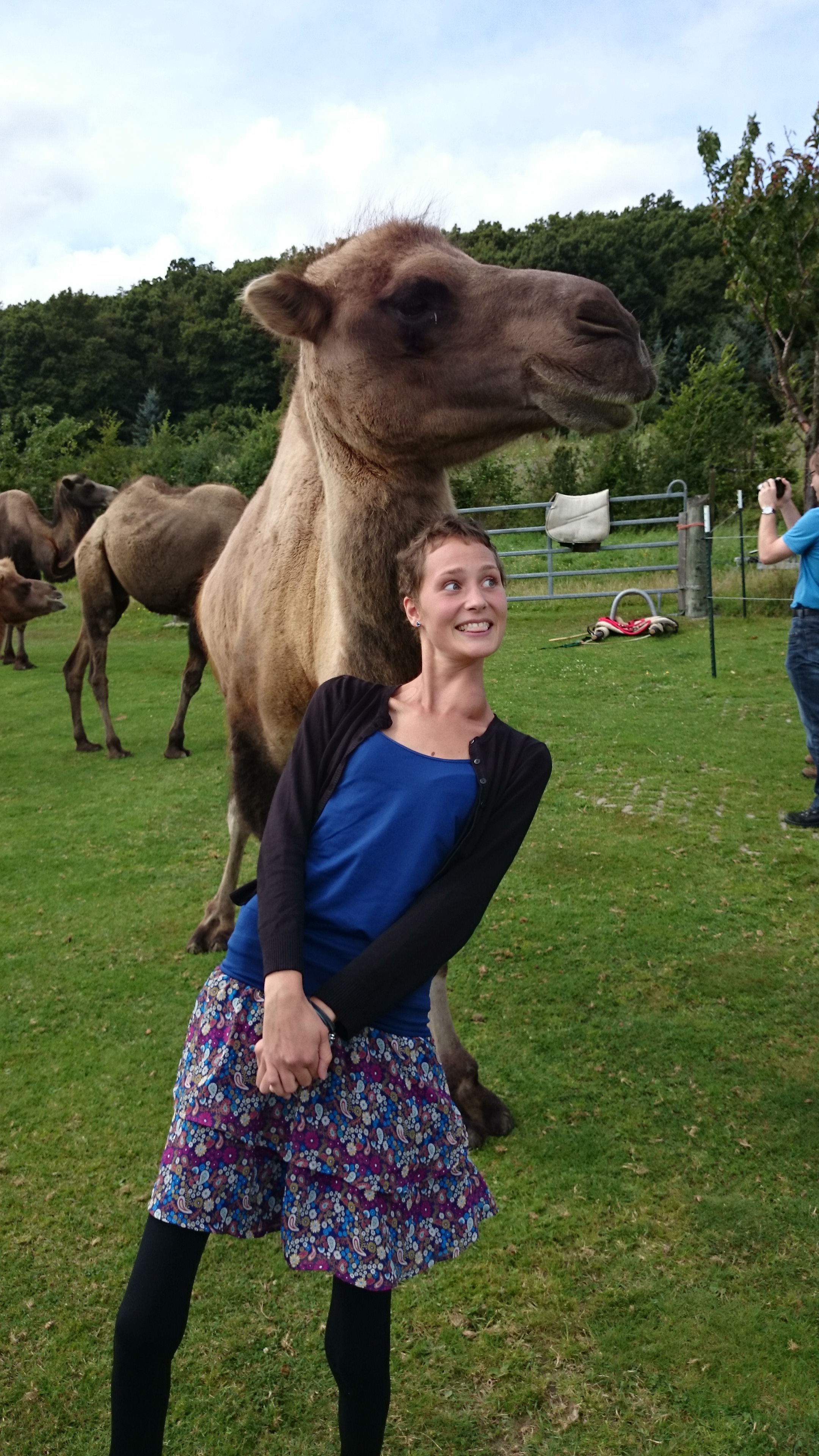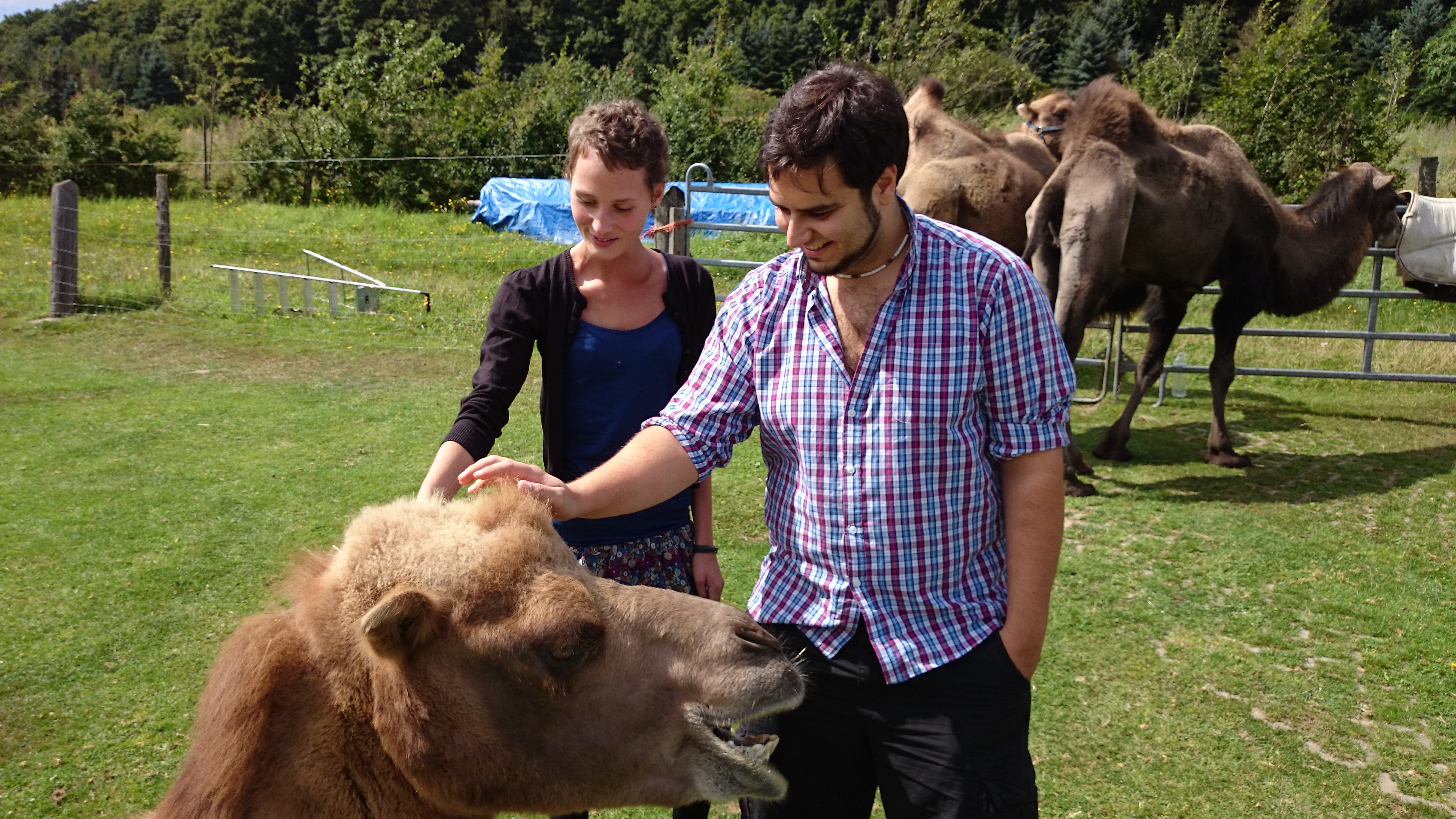 Dort angekommen ging alles sehr schnell. Die unfassbar sympathische Isabel erklärte uns einiges zu den Tieren und Janna konnte die Kamele und Lamas das erste Mal berühren und sie von Nahem beobachten. Zum Teil sehr zahme und neugierige Tiere und prompt erkannte Janna ihr verborgenes Talent: die Kamelflüsterin.
