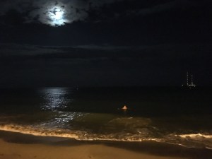 Bei Vollmond baden! Irgendwie verbindet man damit etwas Romantisches finde ich. Das klingt irgendwie nach Hollywoodstreifen. So ganz wars bei uns nicht, eher…gar nicht.